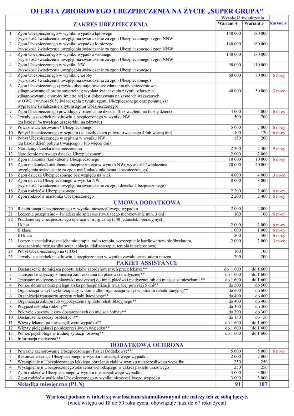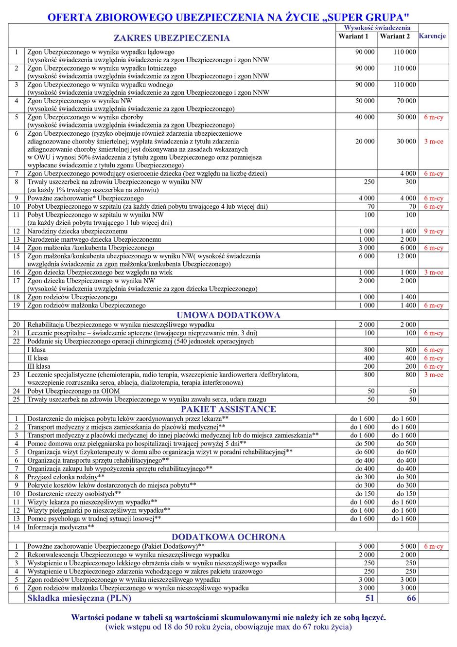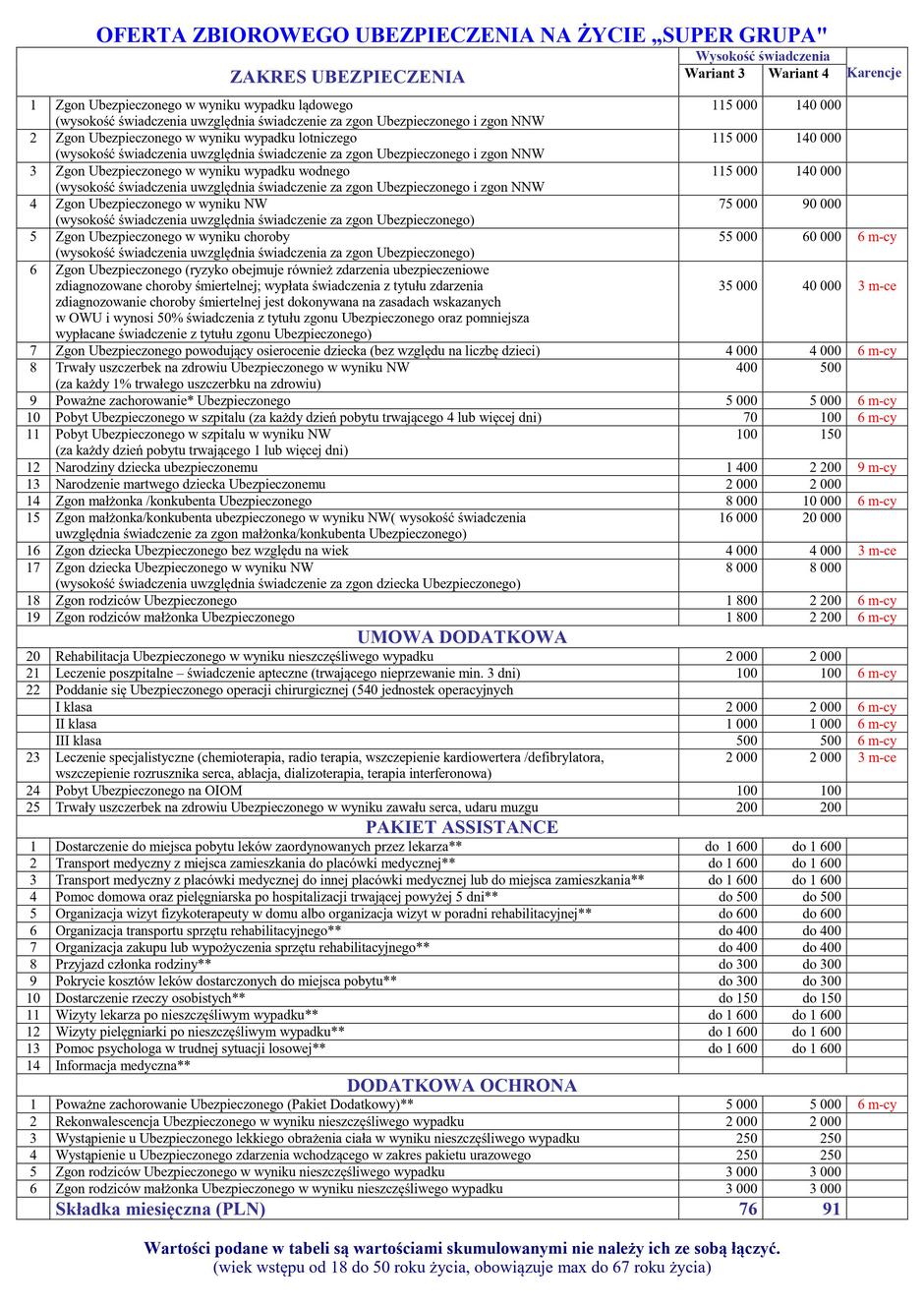 ** Wszystkie świadczeniai usługi w ramach Assistance Medycznego ograniczone są do kwoty 1 600 zł na rok, oddzielnie dla ubezpieczonego i małżonka.
